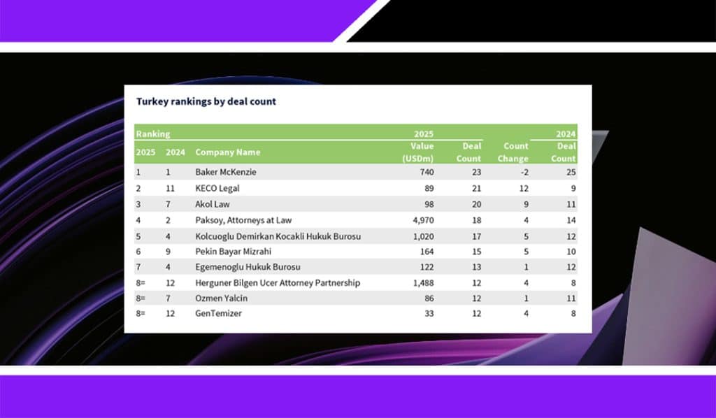 Gen Temizer has been ranked among the top 8 law firms in Türkiye by Mergermarket, based on deal count for 2025